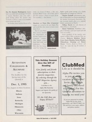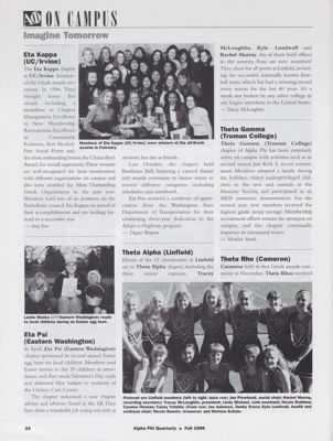 On Campus: Imagine Tomorrow: Eta Kappa (UC/Irvine), Fall 1996. On Campus: Imagine Tomorrow: Eta Psi (Eastern Washington), Fall 1996. On Campus: Imagine Tomorrow: Theta Alpha (Linfield), Fall 1996. On Campus: Imagine Tomorrow: Theta Gamma (Truman College), Fall 1996. On Campus: Imagine Tomorrow: Theta Rho (Cameron), Fall 1996