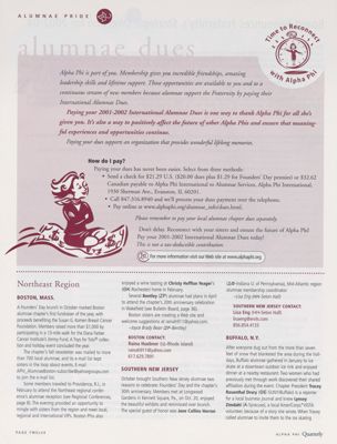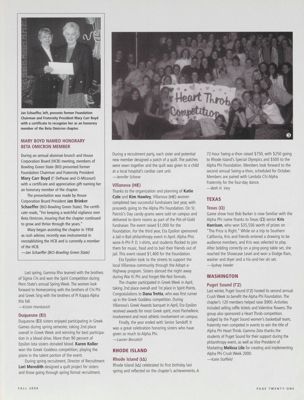 On Campus: Penn State (Gamma Rho), Fall 2000, Continued. Mary Boyd Named Honorary Beta Omicron Member. On Campus: Duquesne (Epsilon Iota), Fall 2000. On Campus: Villanova (Eta Epsilon), Fall 2000. On Campus: Rhode Island (Iota Delta), Fall 2000. On Campus: Texas (Omega), Fall 2000, Continued. On Campus: Puget Sound (Gamma Zeta), Fall 2000. Alumnae Pride: Alternative Alumnae Chapters Offer Non-Traditional Option. Alumnae Pride: Northeast Region: Buffalo, N.Y., Fall 2000