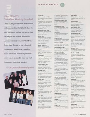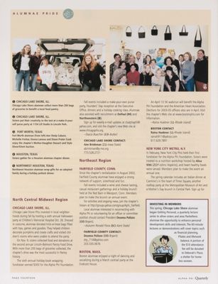 Alumnae Pride: Chicago Lake Shore, Ill., Spring 2003. Alumnae Pride: Fairfield County, Conn., Spring 2003. Alumnae Pride: Boston, Mass., Spring 2003. Alumnae Pride: New York City Metro, N.Y., Spring 2003. Alumnae Pride: Investing in Members. Alumnae Pride: Fort Worth, Texas, Spring 2003, Continued. Alumnae Pride: Houston, Texas, Spring 2003, Continued. Alumnae Pride: Northwest Houston, Texas, Spring 2003, Continued