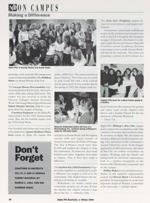 On Campus: Making a Difference: Villanova, Winter 1994, Continued. On Campus: Making a Difference: George Mason, Winter 1994. On Campus: Making a Difference: James Madison, Winter 1994. On Campus: Making a Difference: Old Dominion, Winter 1994. On Campus: Making a Difference: Virginia, Winter 1994. On Campus: Making a Difference: Bishop's, Winter 1994